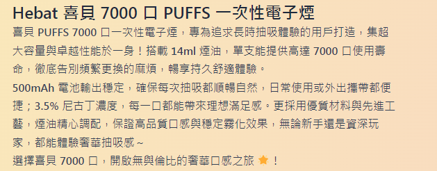 選擇喜貝 7000 口一次性電子煙,享受長效、順暢的吸煙過程,體驗卓越口感與極致享受!